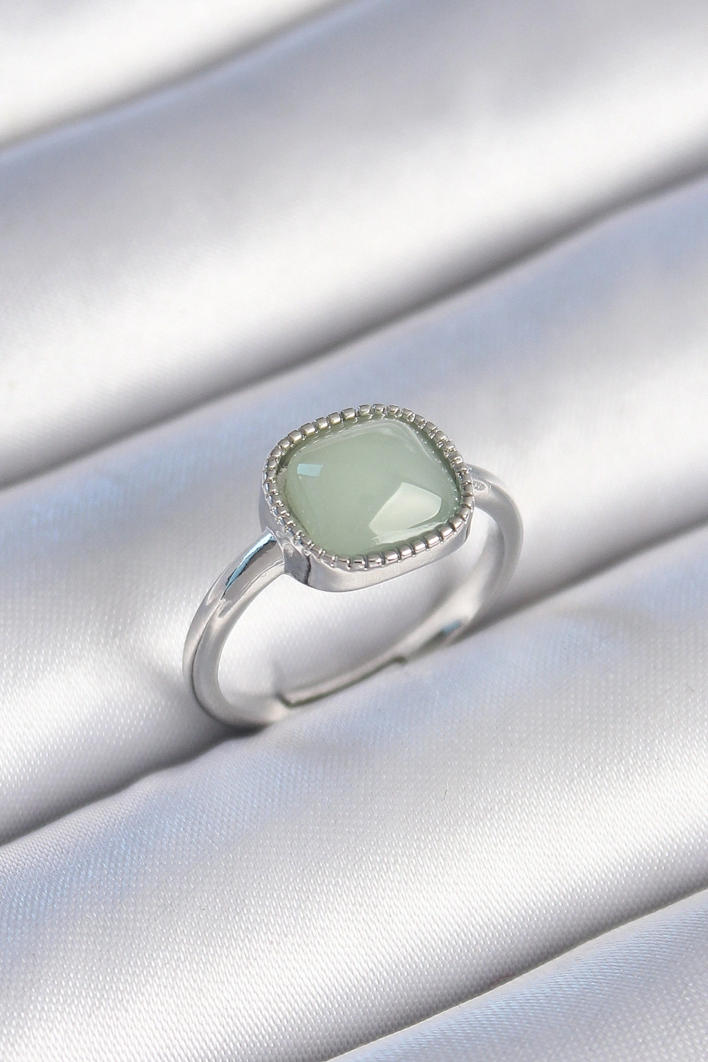 Pirinç Gümüş Renk Yeşil Kare Mineli Kadın Yüzük
