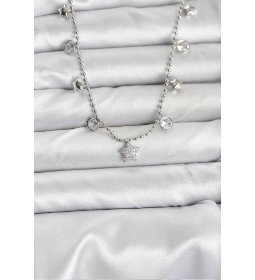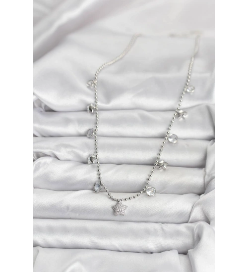 Pirinç Gümüş Renk Yıldız Model Kadın Kolye