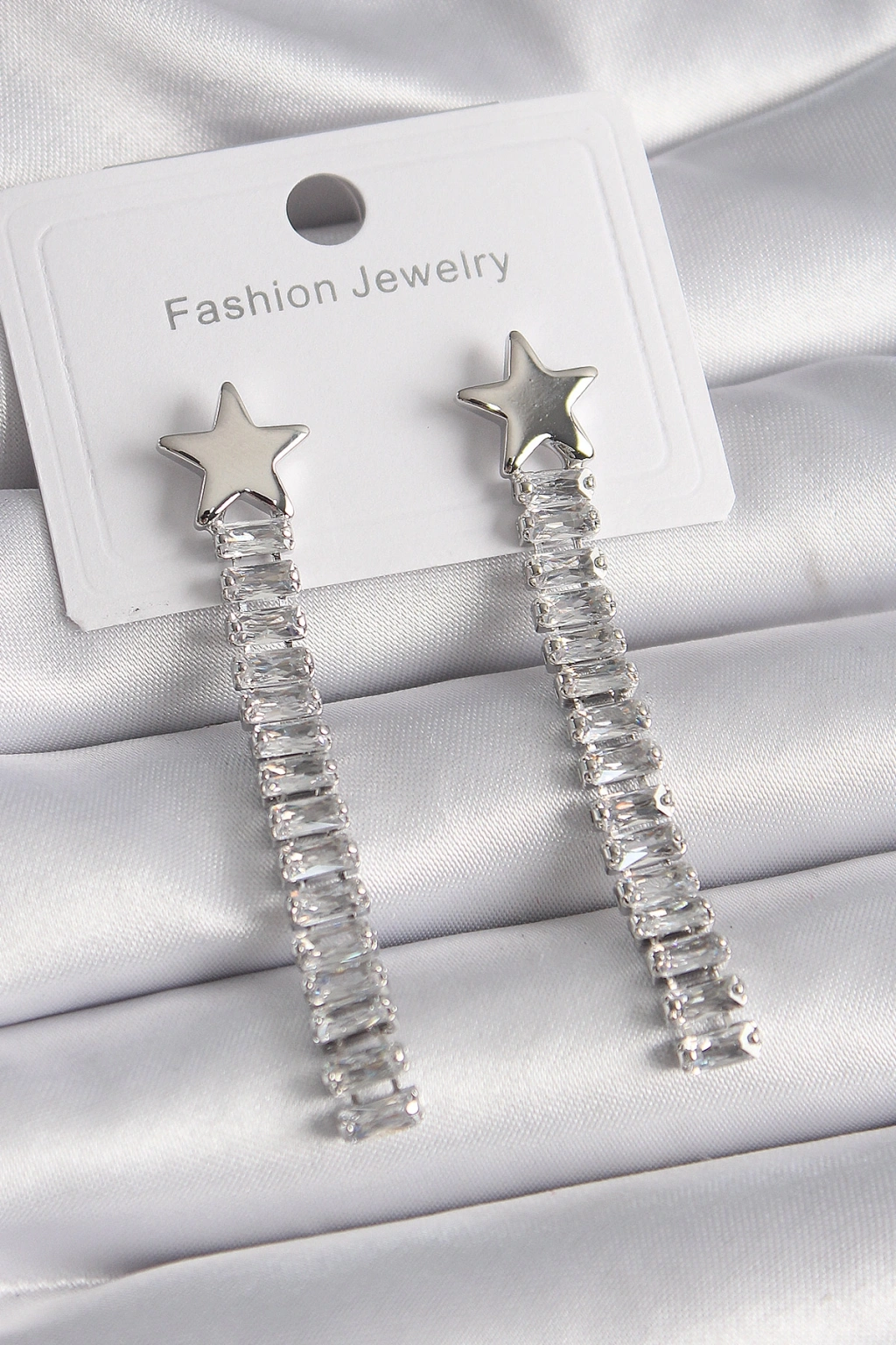 Pirinç Gümüş Renk Yıldız Model Su Yolu Zirkon Taş Kadın Küpe