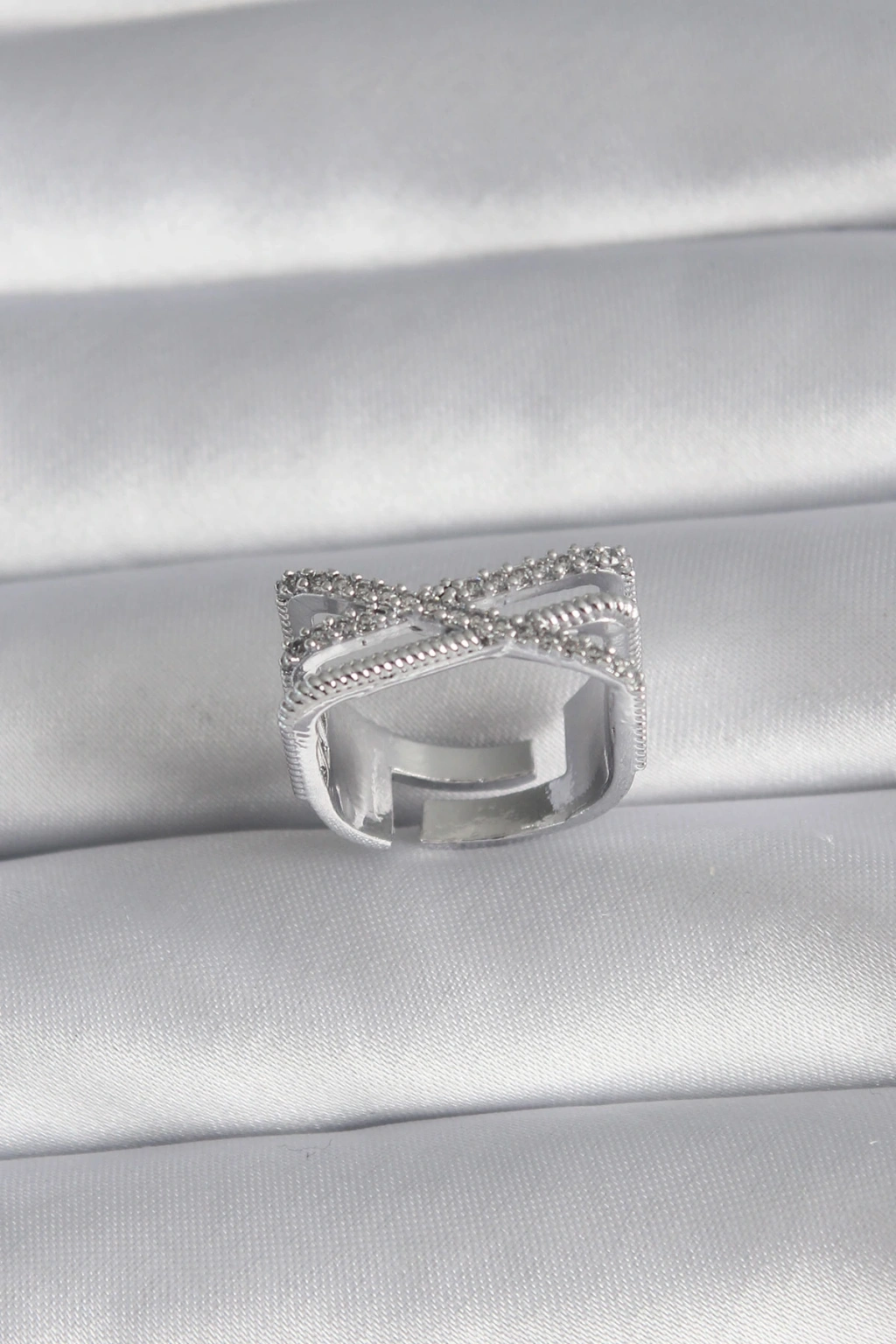 Pirinç Gümüş Renk Zirkon Taş Detay Kadın Yüzük