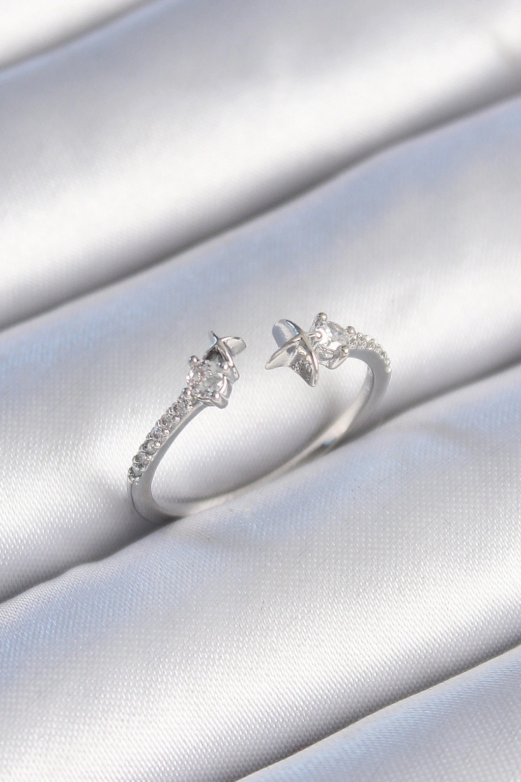Pirinç Gümüş Renk Zirkon Taş Detay Yıldız Model Kadın Yüzük