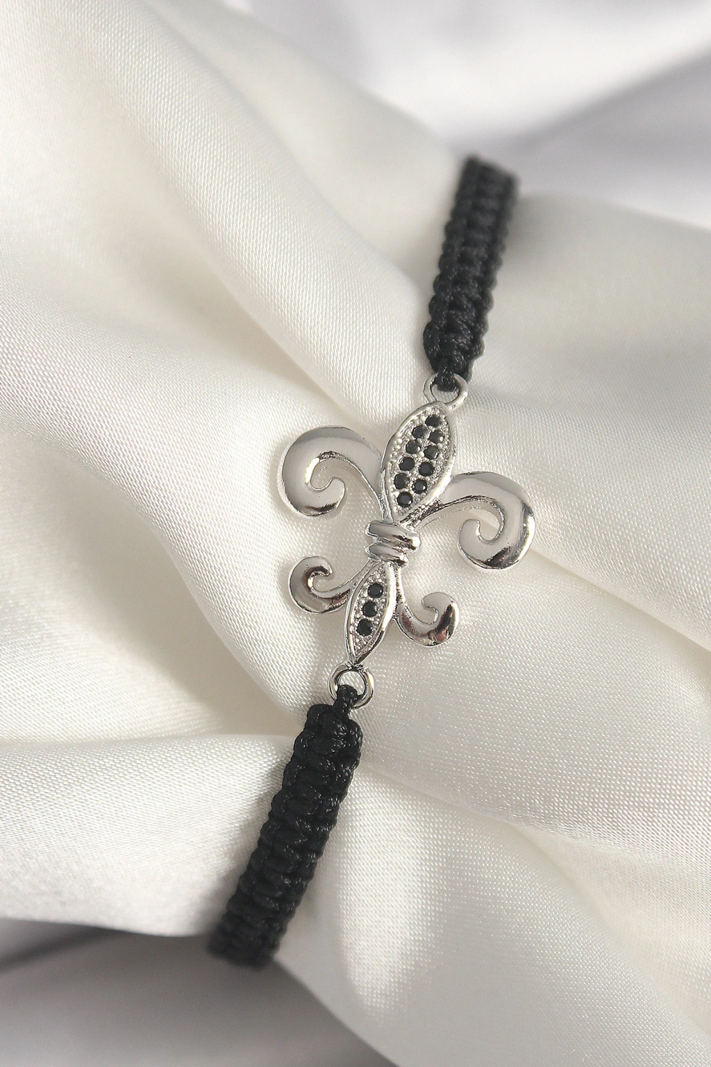 Pirinç Gümüş Renk Zirkon Taş İşlemeli Zambak Model Asansörlü Makrome Model Kadın Bileklik