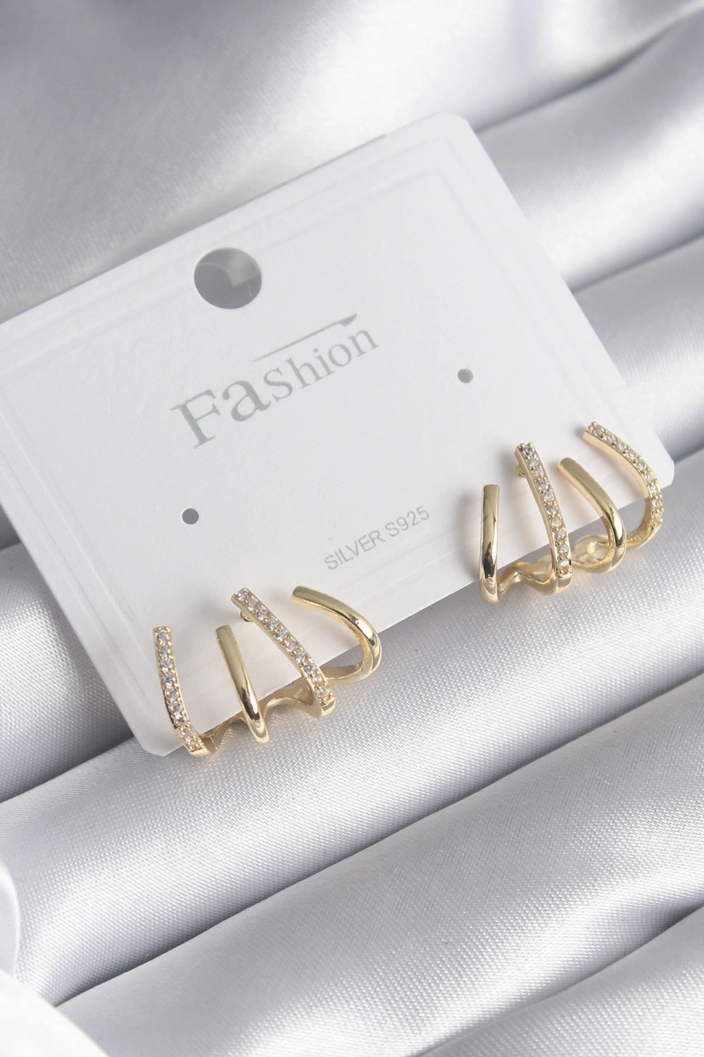 Pirinç Gümüş Renk Zirkon Taşlı Çatal Model Kadın Küpe