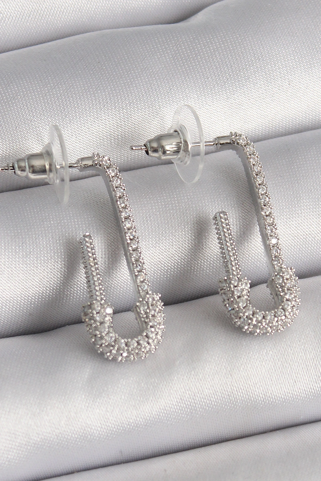 Pirinç Gümüş Renk Zirkon Taşlı Çengelli İğne Model Kadın Küpe