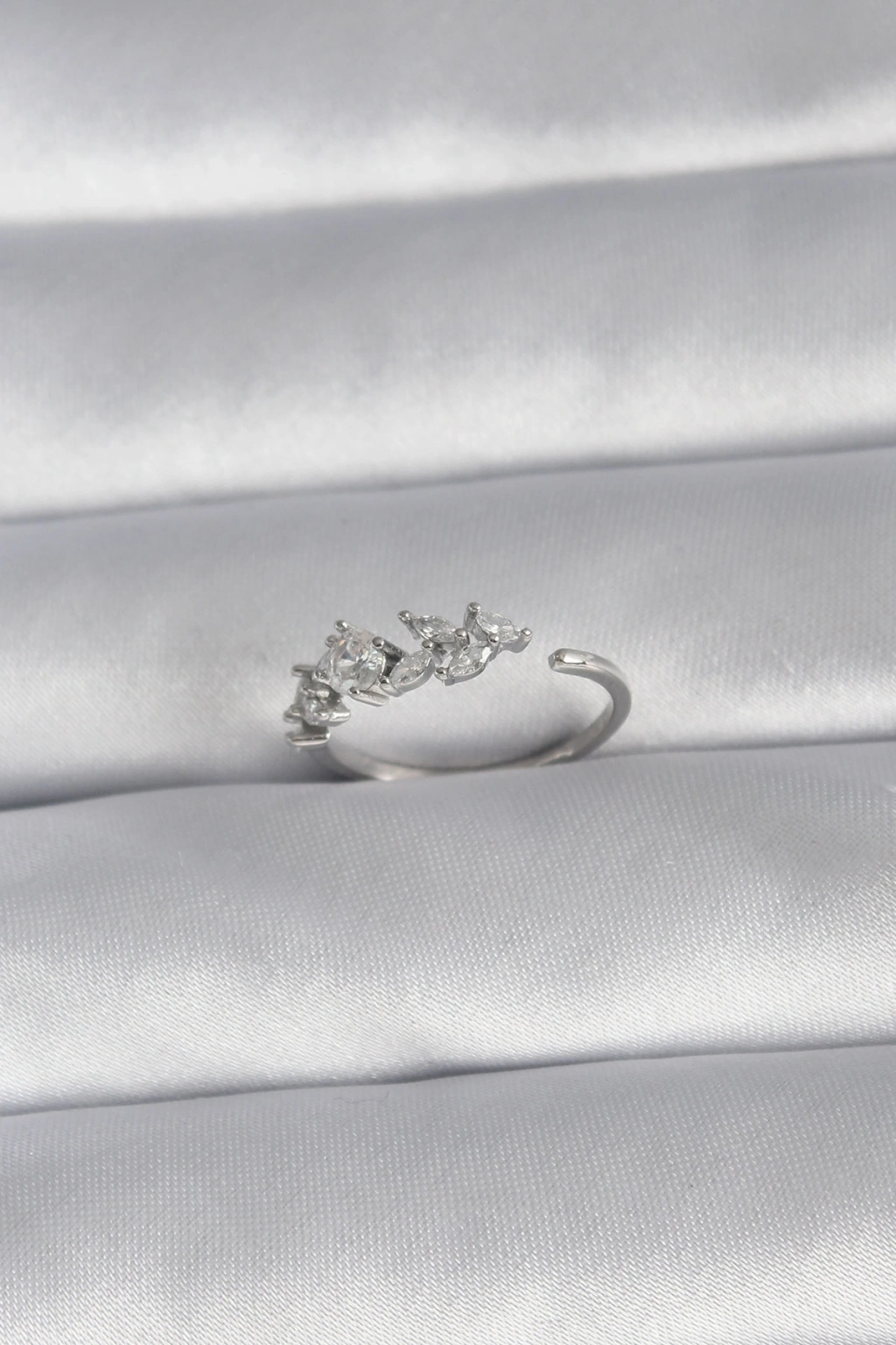 Pirinç Gümüş Renk Zirkon Taşlı Çiçek Model Kadın Yüzük