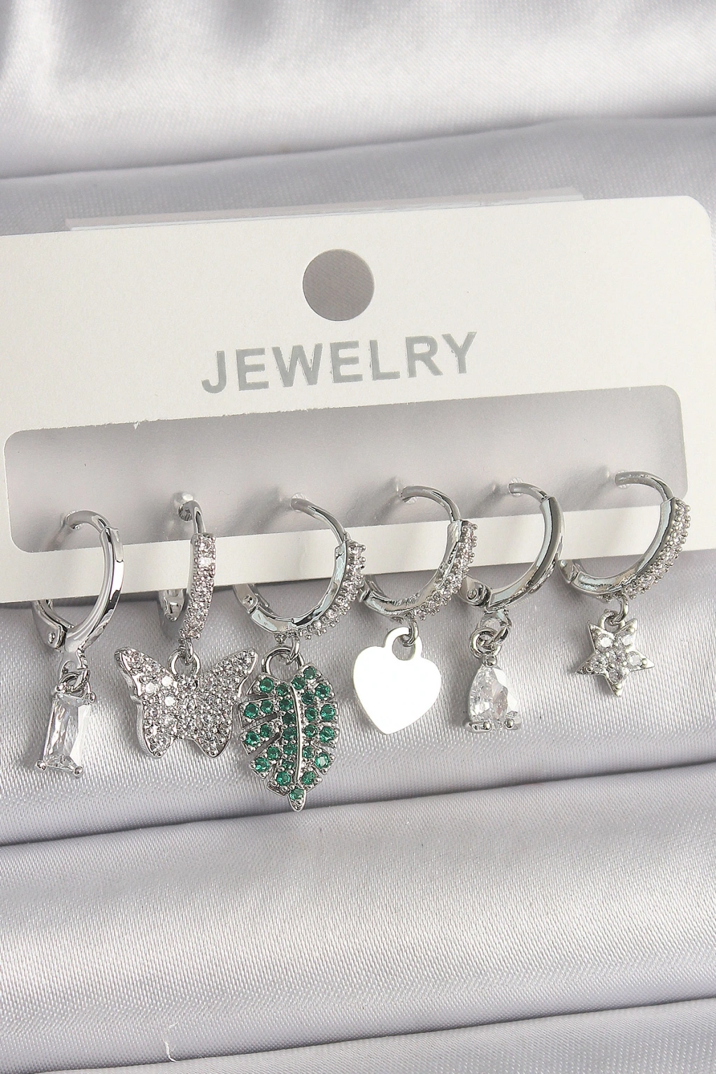 Pirinç Gümüş Renk Zirkon Taşlı Çoklu Figür Kadın Küpe Seti