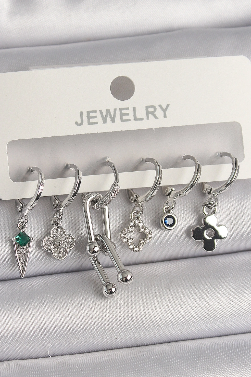 Pirinç Gümüş Renk Zirkon Taşlı Çoklu Figür Kadın Küpe Seti