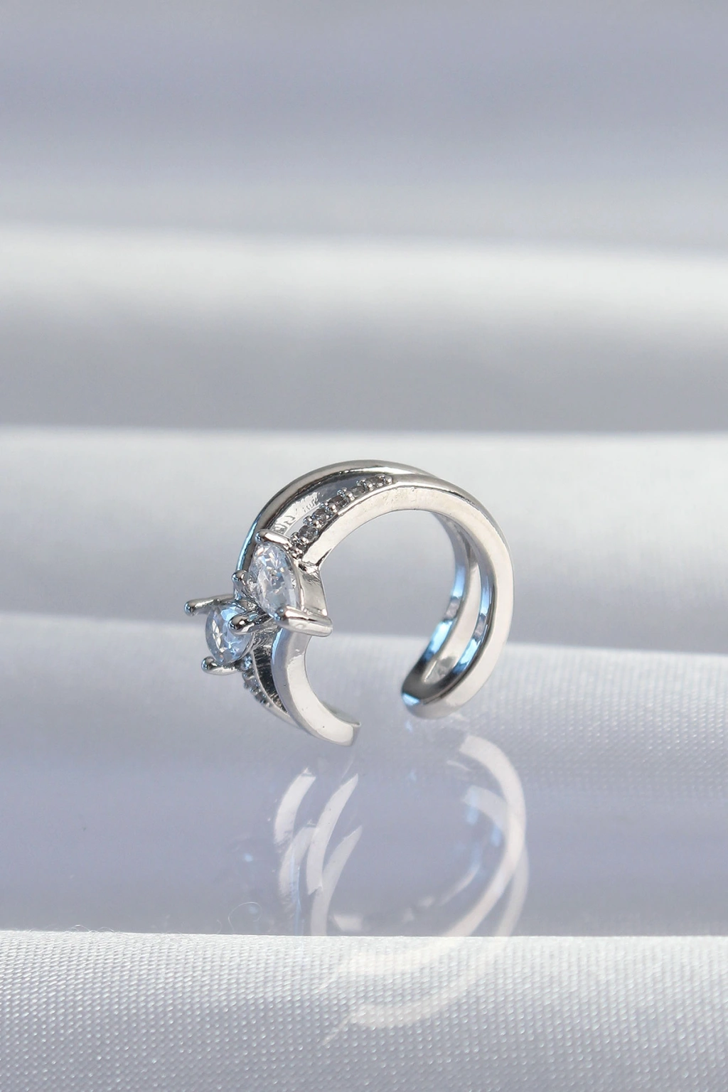 Pirinç Gümüş Renk Zirkon Taşlı Damla Earcuff Küpe