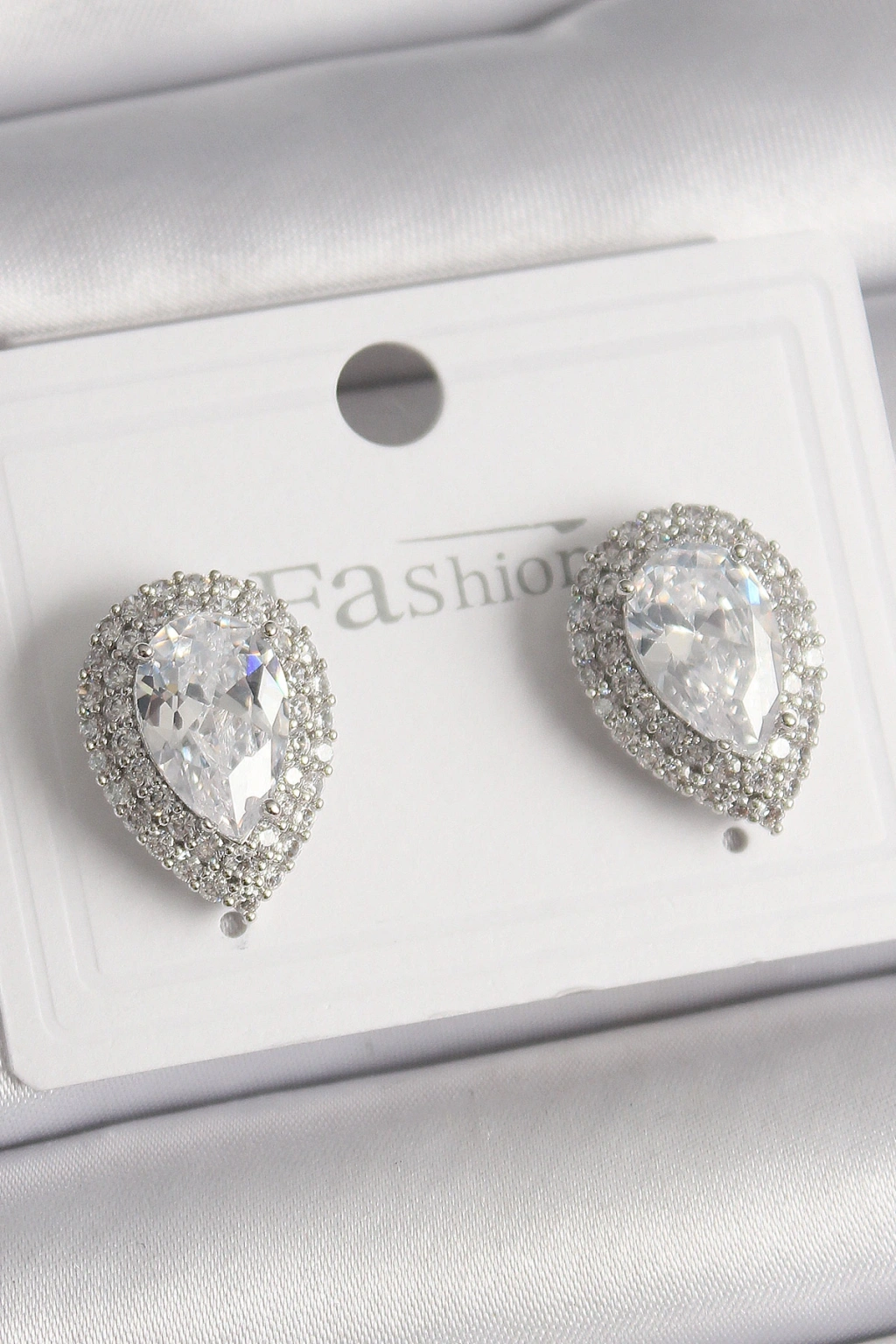 Pirinç Gümüş Renk Zirkon Taşlı Damla Model Kadın Küpe