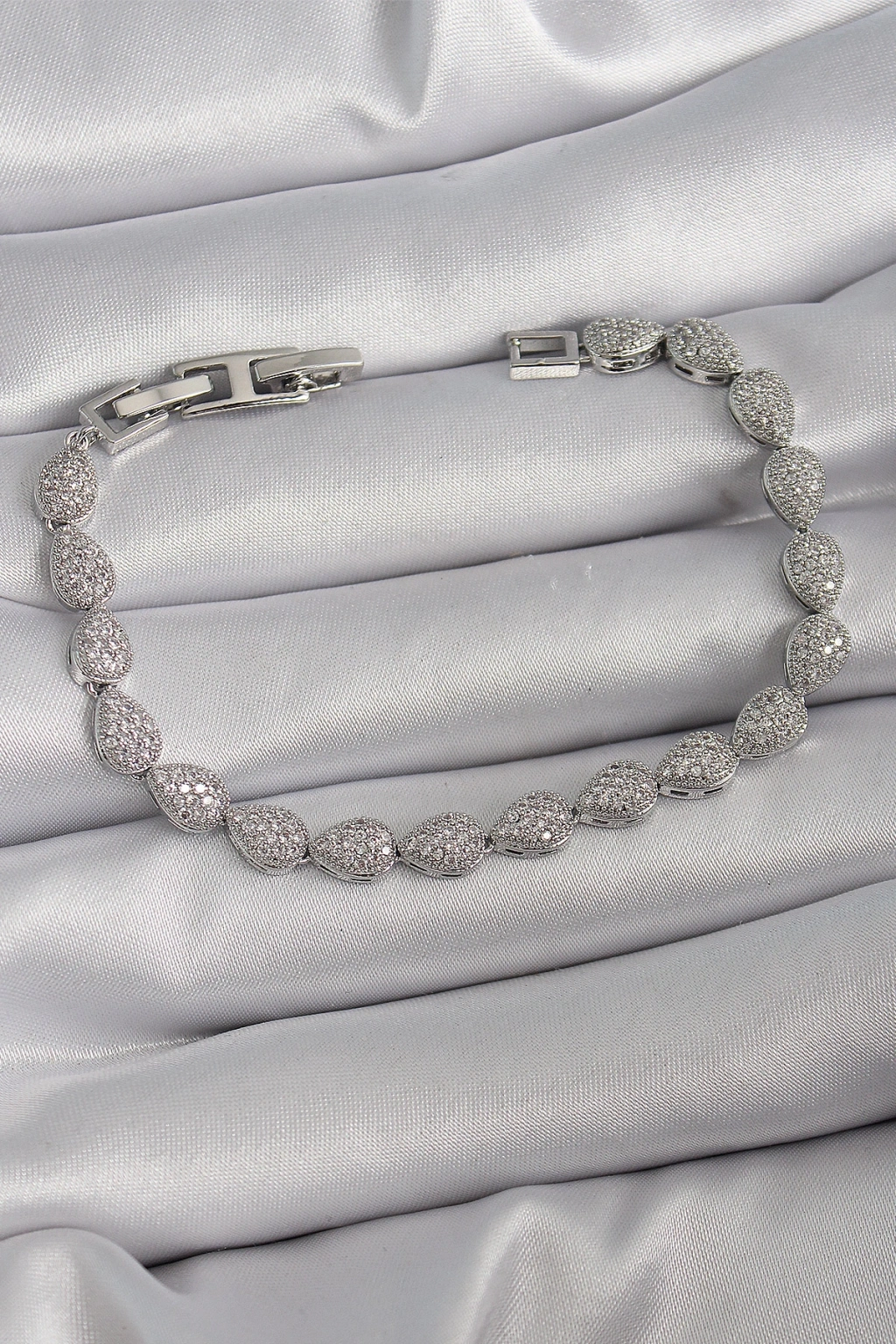 Pirinç Gümüş Renk Zirkon Taşlı Damla Model Vıp Seri Kadın Bileklik
