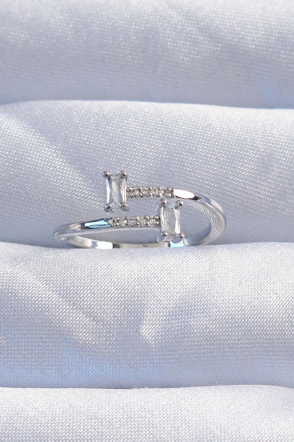 Pirinç Gümüş Renk Zirkon Taşlı Geometrik Ayarlanabilir Yüzük