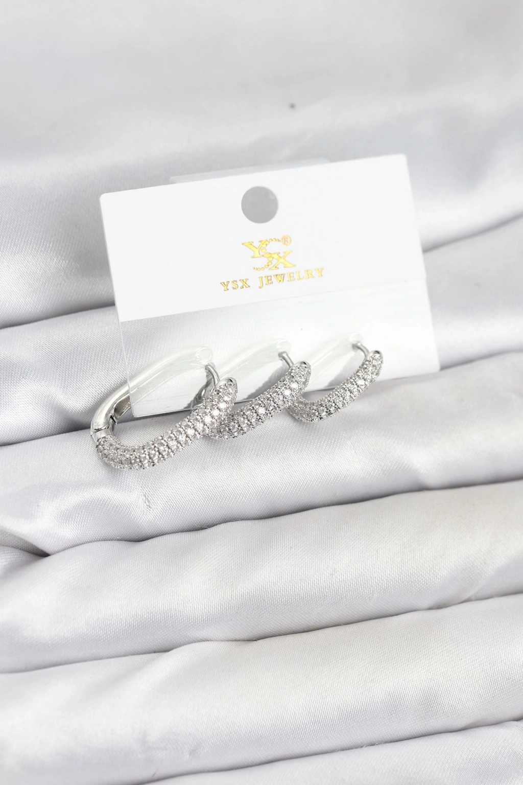 Pirinç Gümüş Renk Zirkon Taşlı Halka Model YSX Trio Küpe Seti
