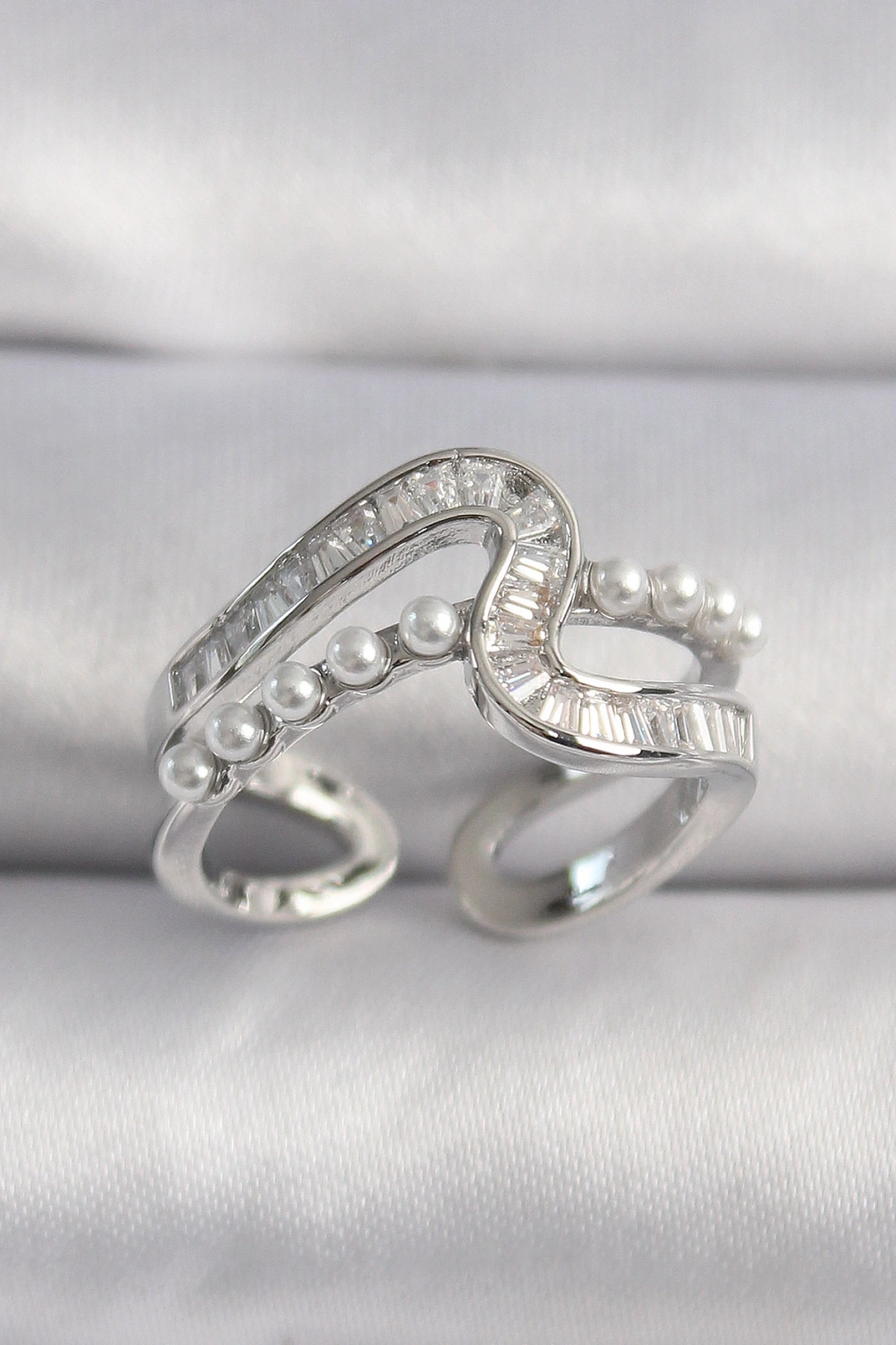 Pirinç Gümüş Renk Zirkon Taşlı İnci Detay Vıp Seri Kadın Yüzük