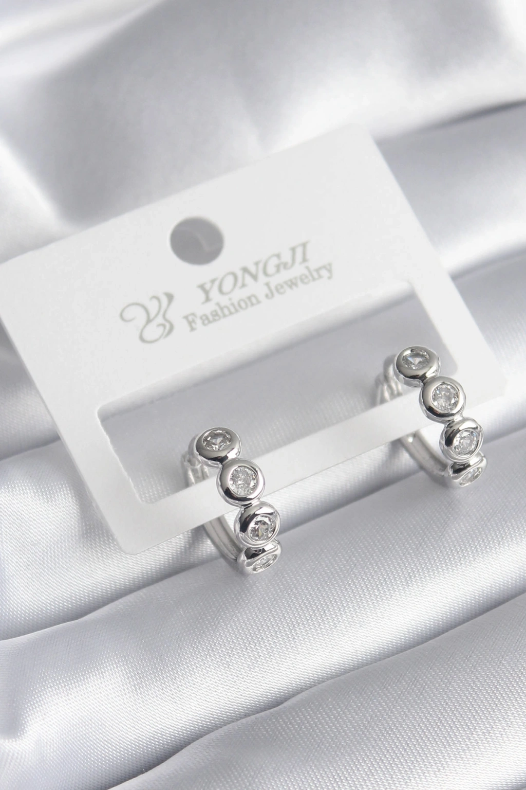 Pirinç Gümüş Renk Zirkon Taşlı Kadın Küpe