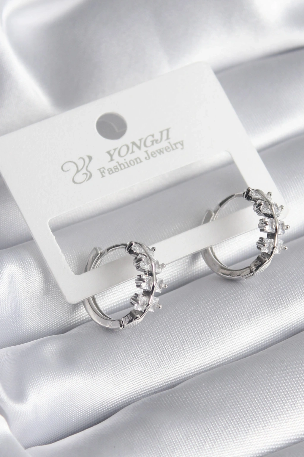 Pirinç Gümüş Renk Zirkon Taşlı Kadın Küpe