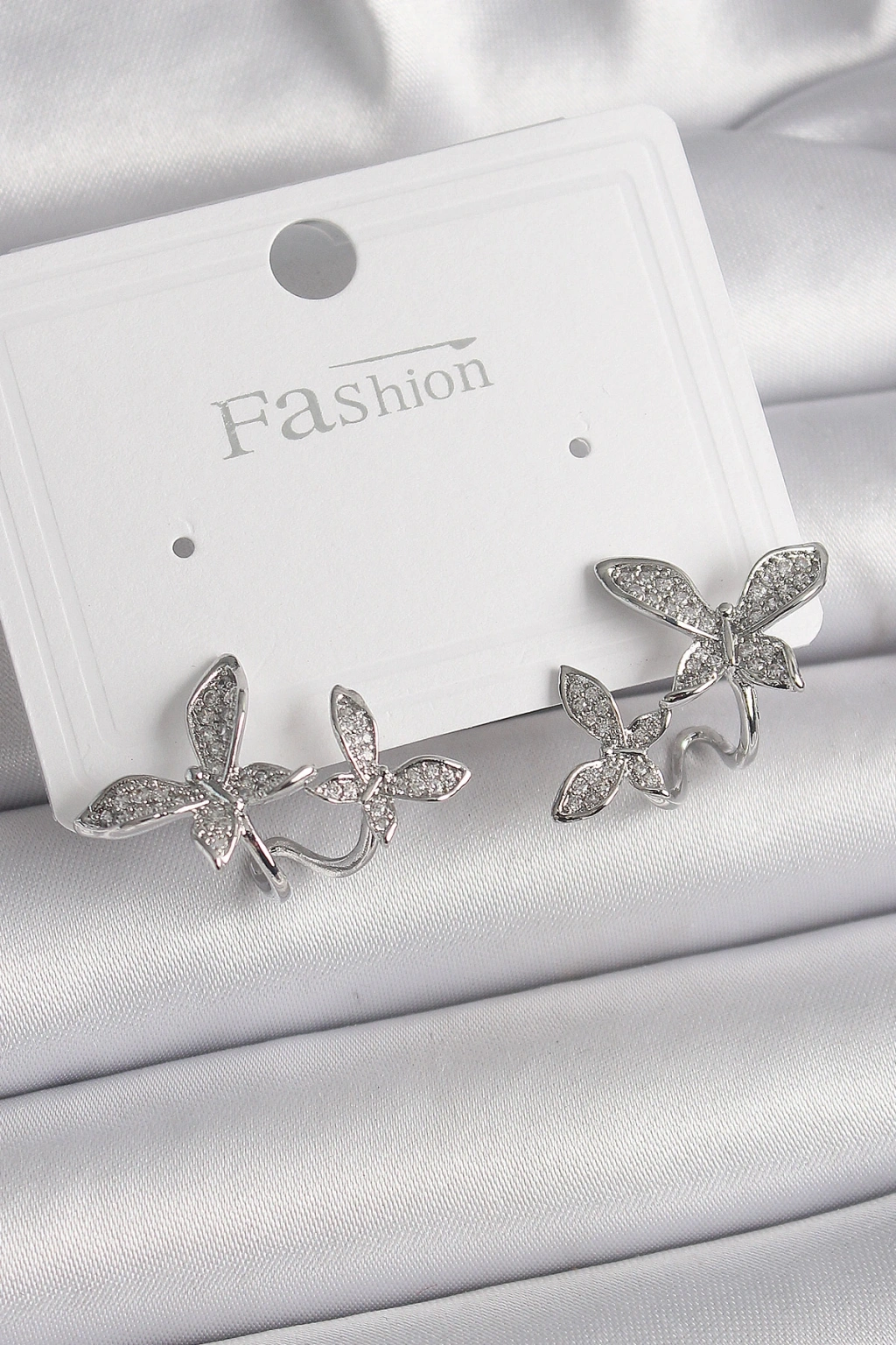 Pirinç Gümüş Renk Zirkon Taşlı Kelebek Model Kadın Küpe