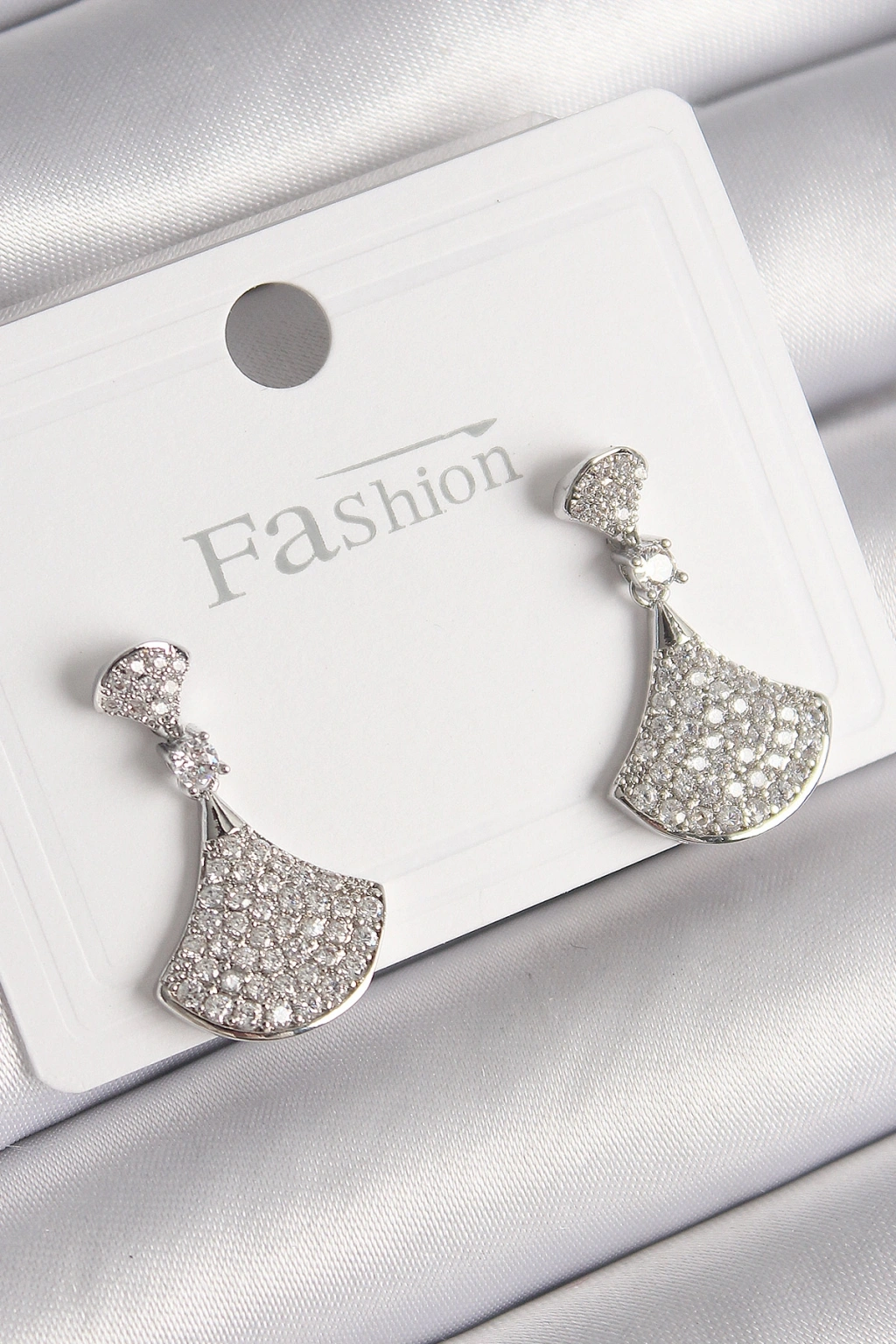 Pirinç Gümüş Renk Zirkon Taşlı Motif Model Kadın Küpe