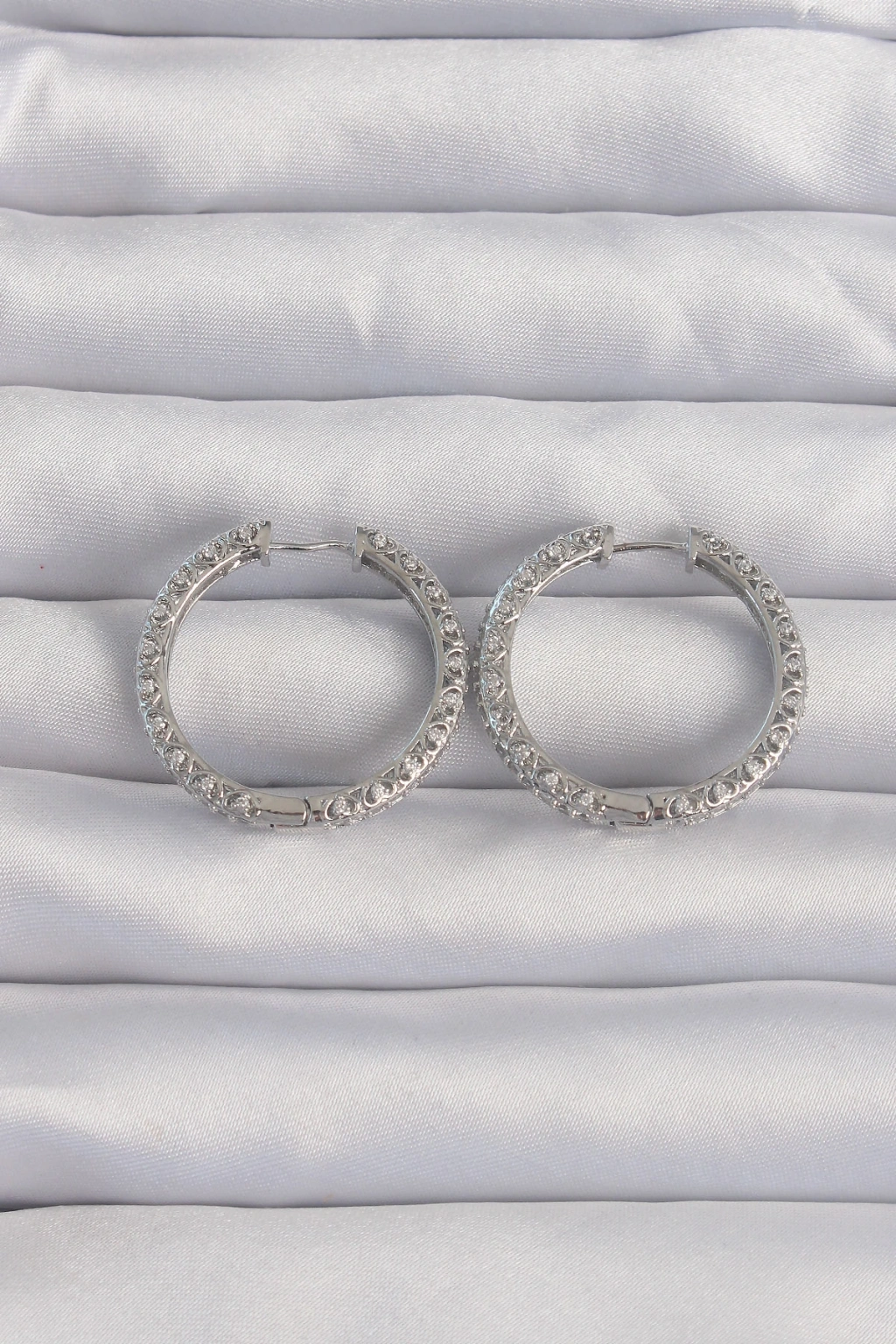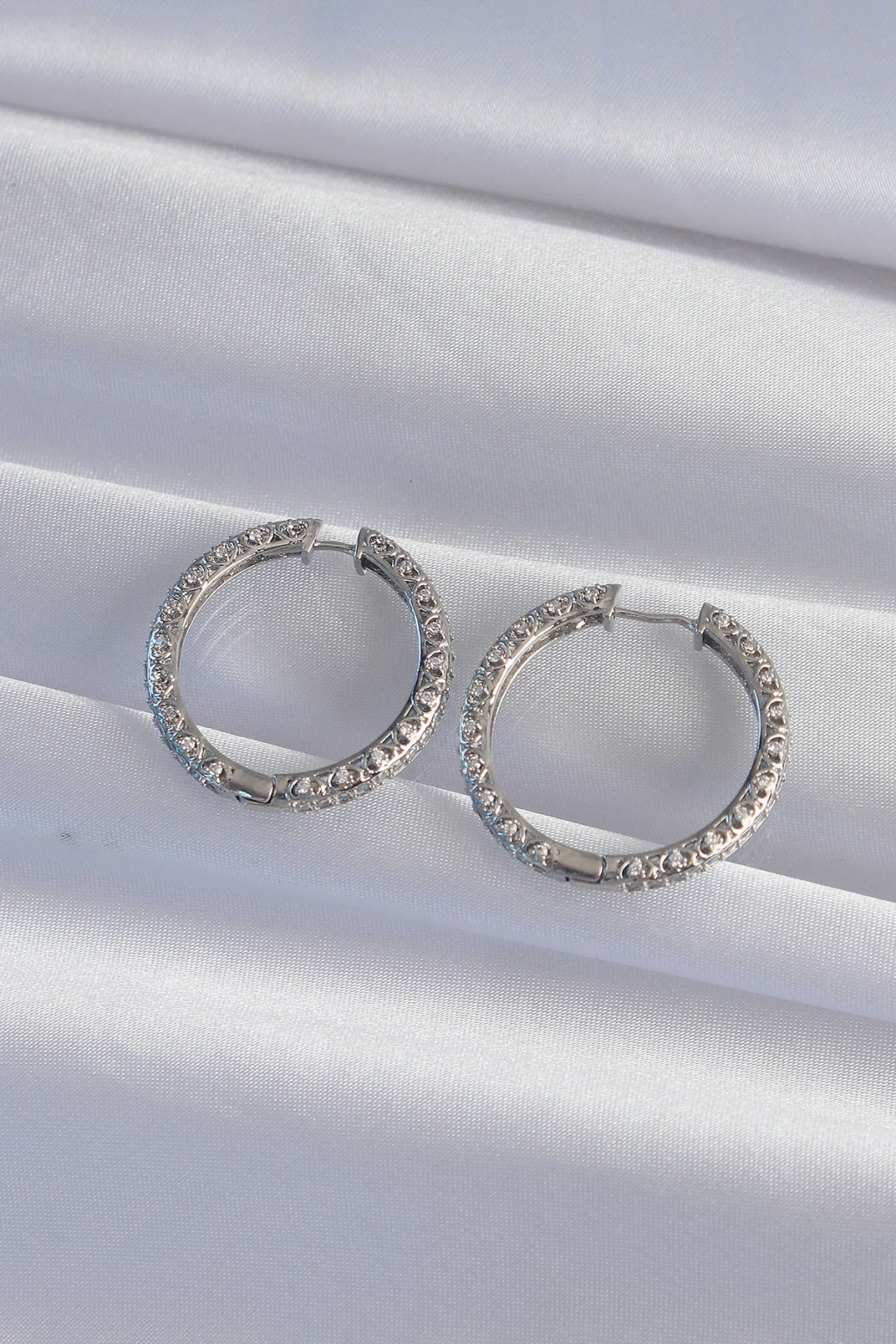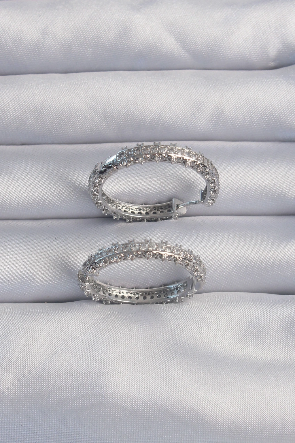 Pirinç Gümüş Renk Zirkon Taşlı Motifli Halka Küpe