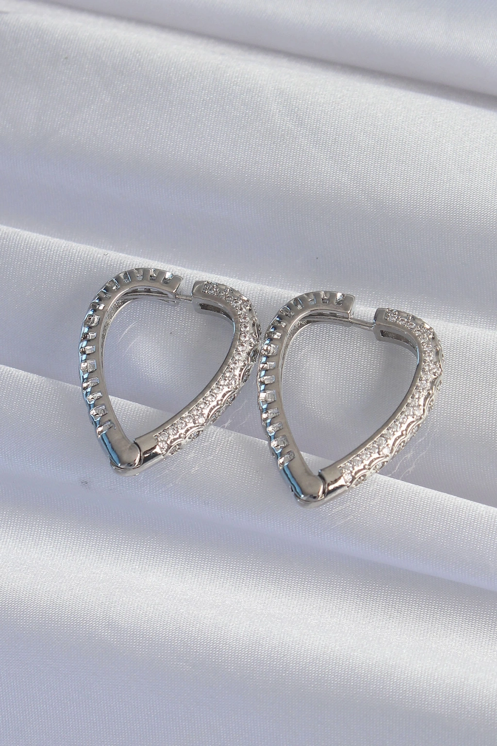 Pirinç Gümüş Renk Zirkon Taşlı Motifli Kalp Küpe