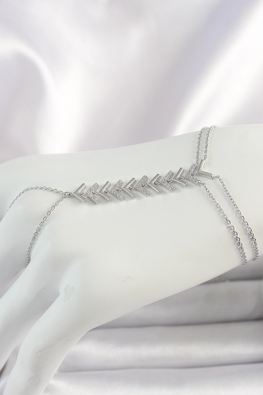 Pirinç Gümüş Renk Zirkon Taşlı V Model Kadın Şahmeran