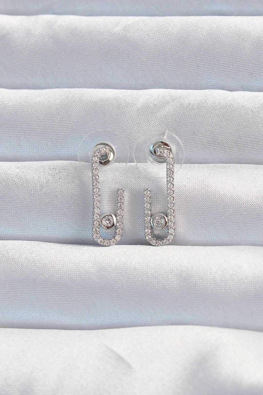 Pirinç Gümüş Renk Zirkon Taşlı Yarım Messika Küpe