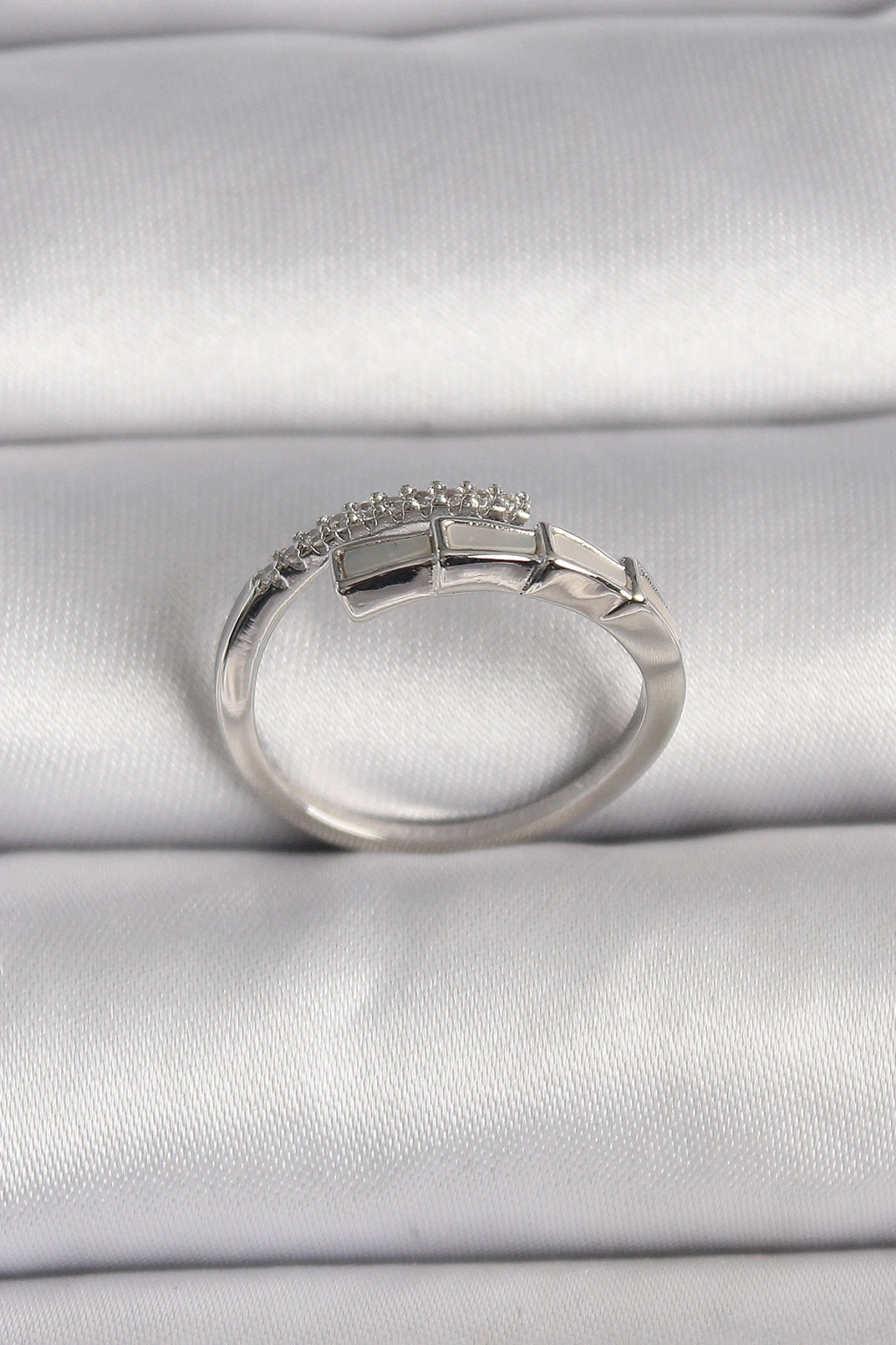 Pirinç Gümüş Renk Zirkon Taşlı Yılan Model Ayarlanabilir Yüzük