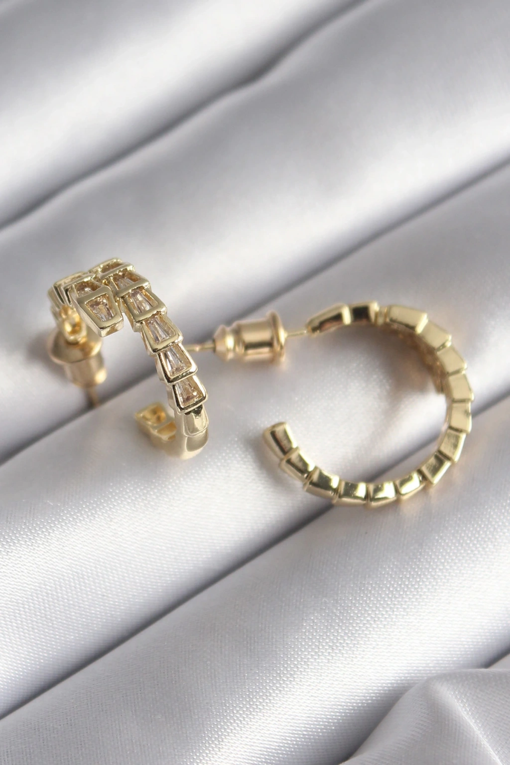 Pirinç Gümüş Renk Zirkon Taşlı Yılan Model Kadın Küpe