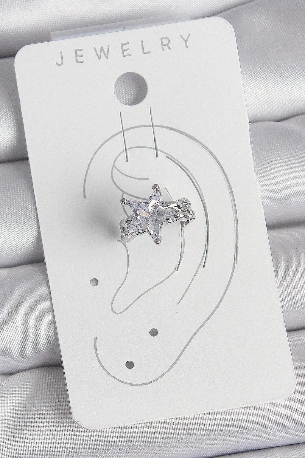 Pirinç Gümüş Renk Zirkon Taşlı Yıldız Model Kadın Kıkırdak Küpe