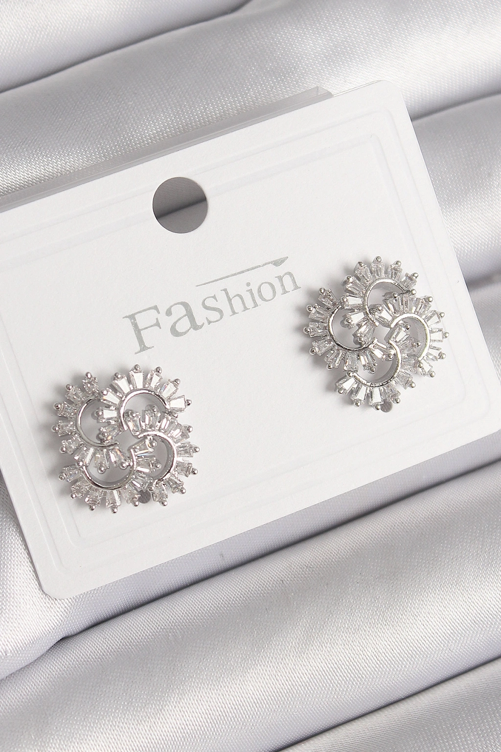 Pirinç Gümüş Renk Zirkon Taşlı Yonca Model Kadın Küpe
