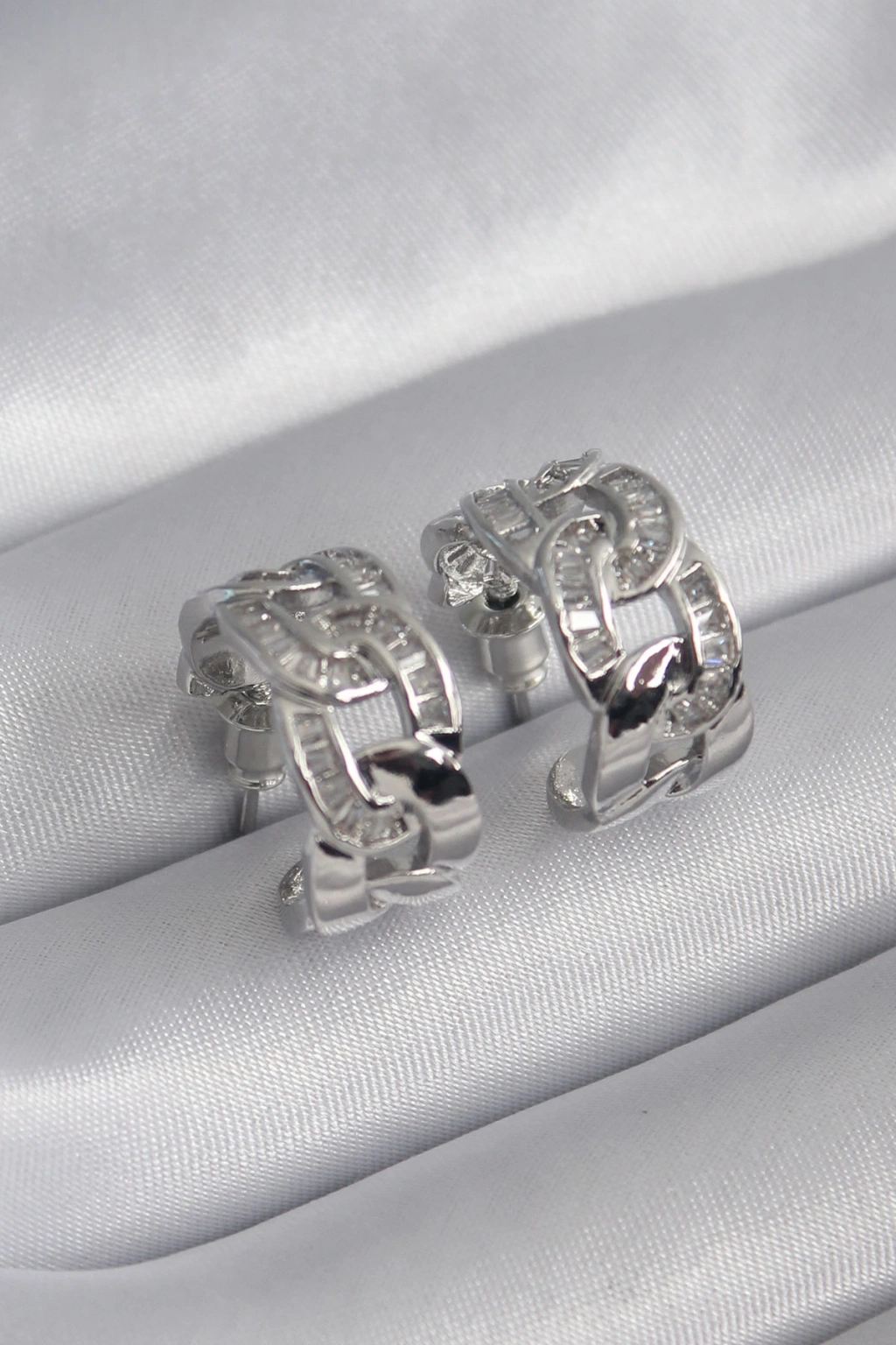 Pirinç Gümüş Renk Zirkon Taşlı Zincir Model Kadın Küpe