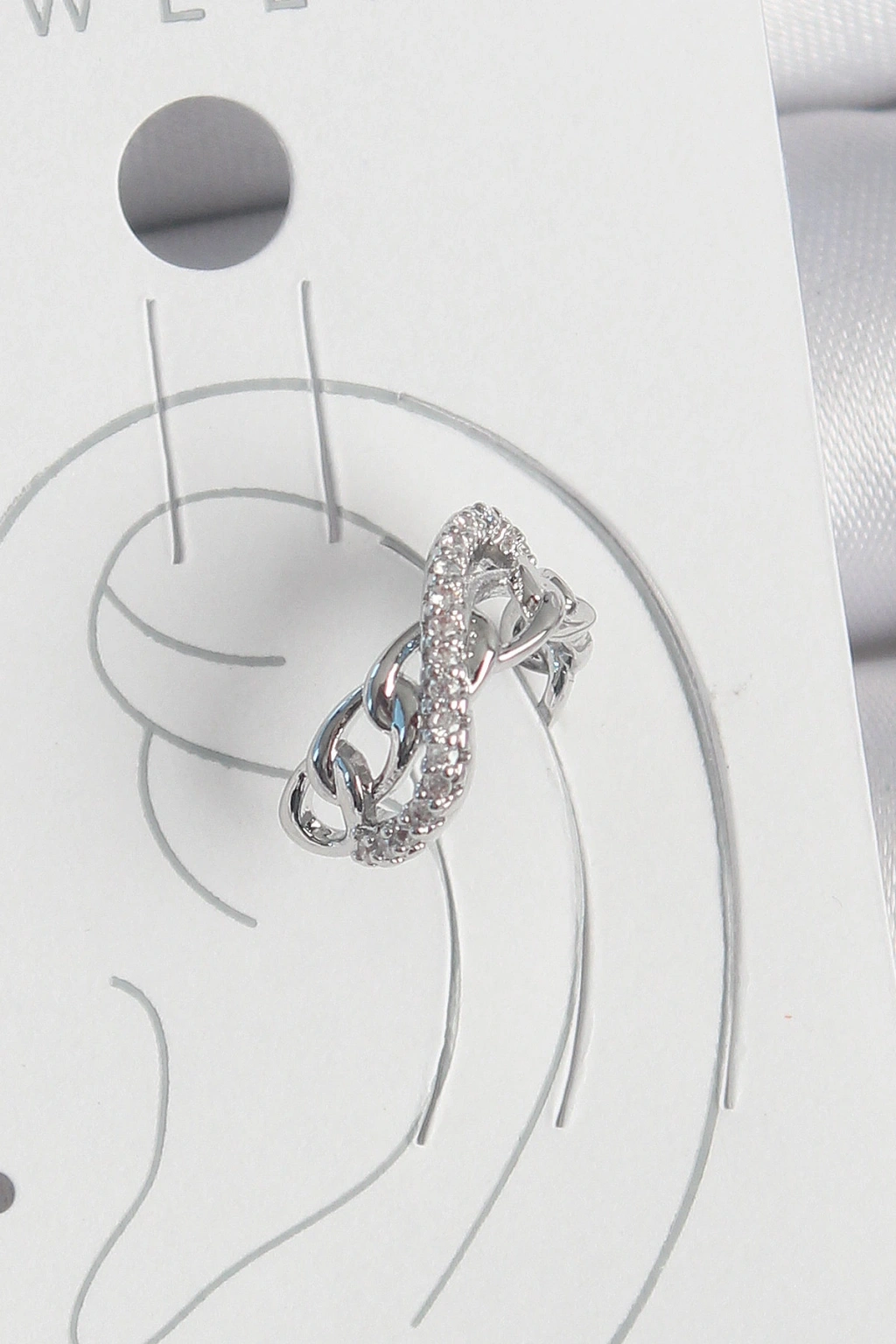 Pirinç Gümüş Renk Zirkon Taşlı Zincir Sonsuzluk Model Kadın Kıkırdak Küpe