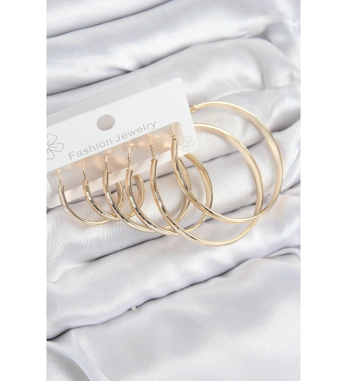 Pirinç Halka Model Gold Renk Kadın Set Küpe