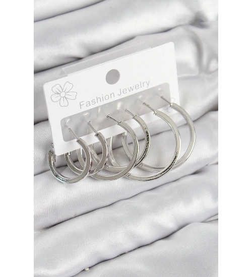 Pirinç Halka Model Gümüş Renk Kadın Set Küpe