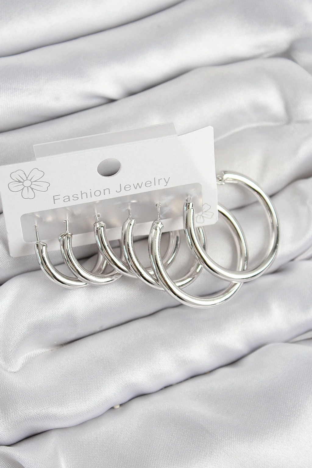 Pirinç Halka Model Gümüş Renk Kadın Set Küpe