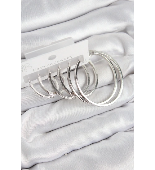 Pirinç Halka Model Gümüş Renk Kadın Set Küpe