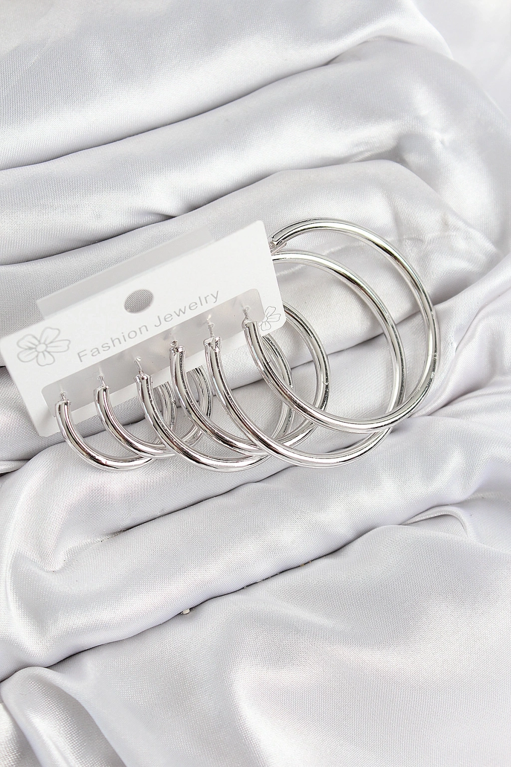 Pirinç Halka Model Gümüş Renk Kadın Set Küpe