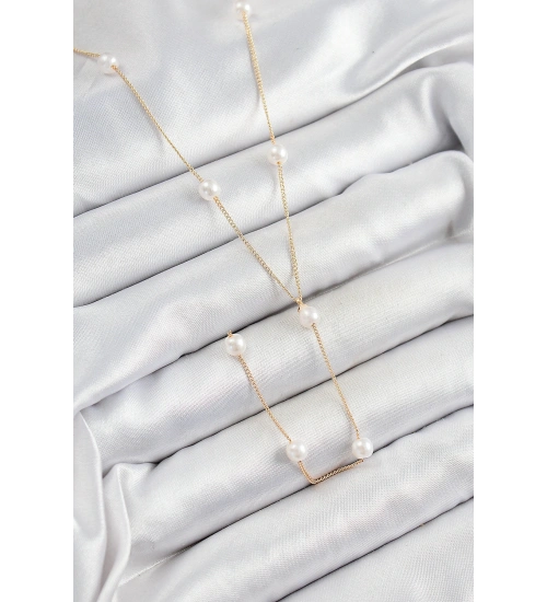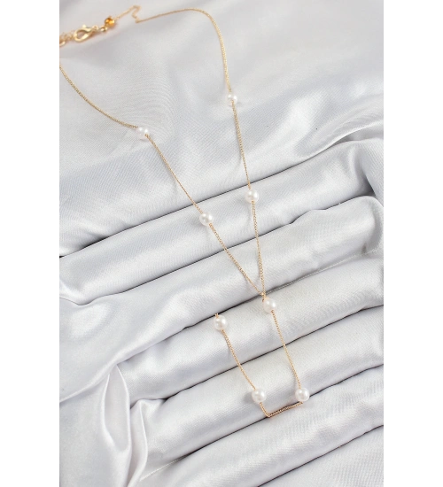 Pirinç İnci Figürlü Y Model Gold Renk Kadın Kolye