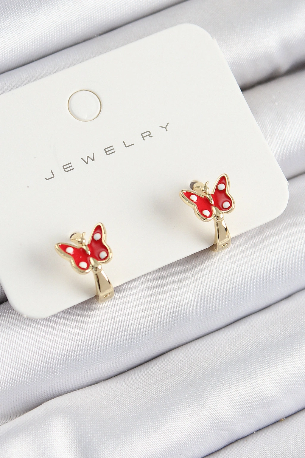 Pirinç Kelebek Model Gold Renk Çocuk Küpe