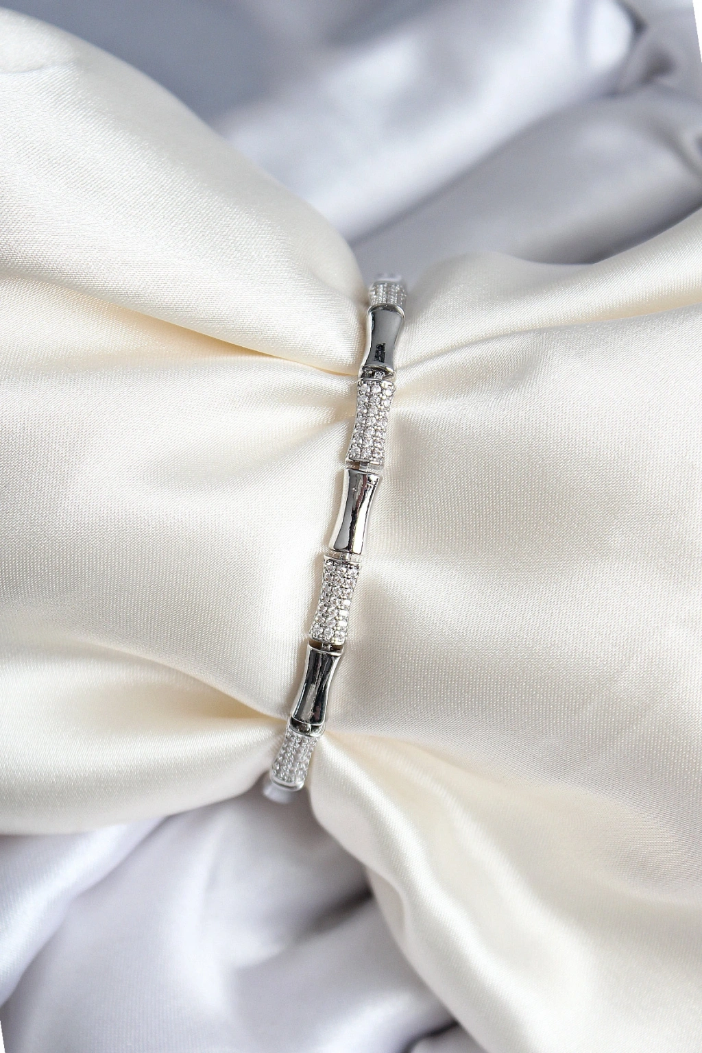 Pirinç Kemik Model Zirkon Taşlı Gümüş Renk Kadın Bileklik