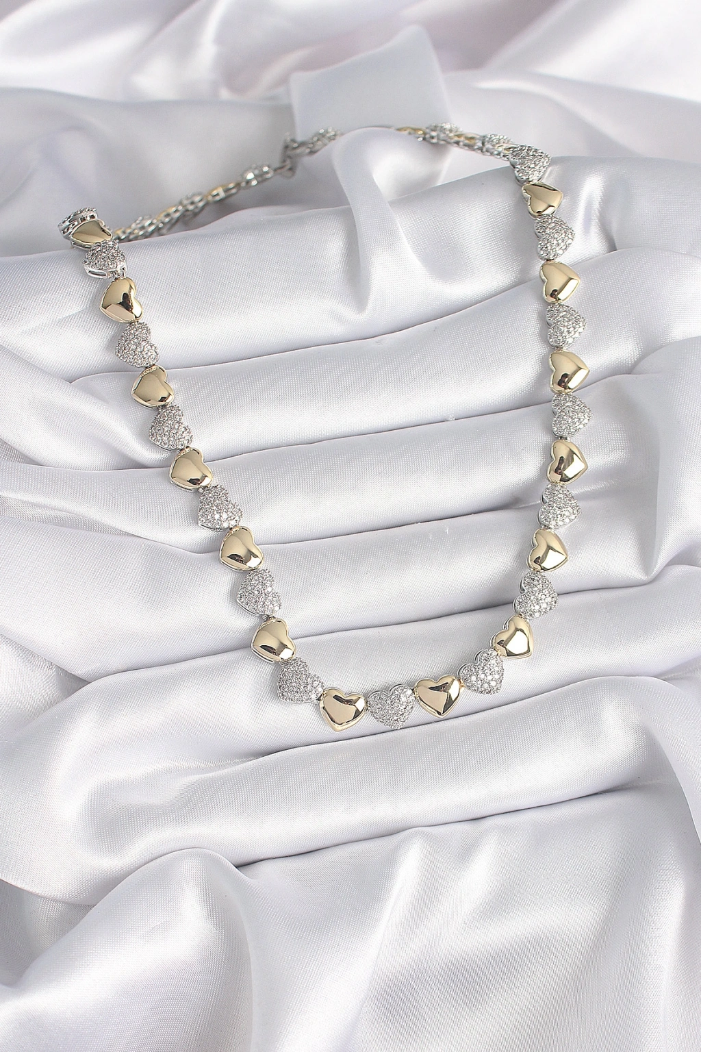 Pirinç Mix Renk Zirkon Taşlı Kalp Model VIP Exclusive Seri Kadın Kolye