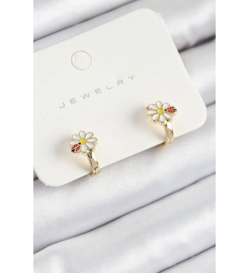 Pirinç Papatya Model Gold Renk Çocuk Küpe