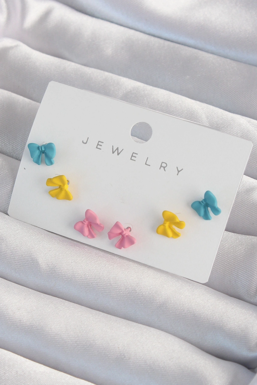 Pirinç Rengarenk Mineli Minimal Fiyonk Küpe Seti