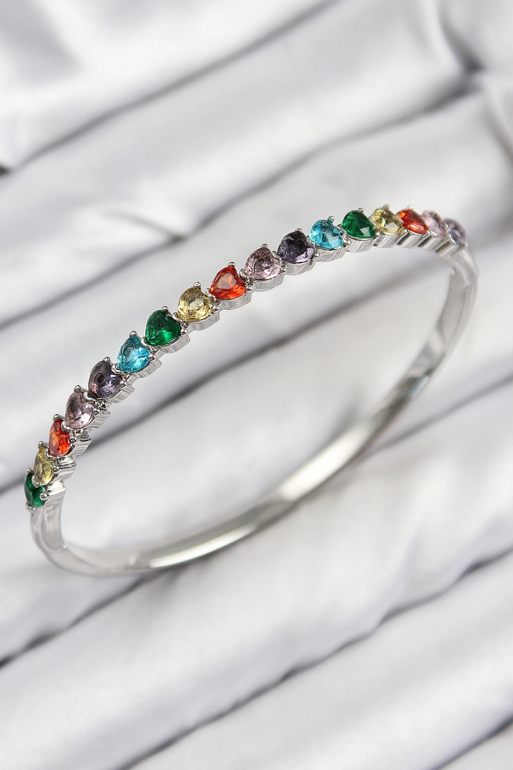 Pirinç Renkli Zirkon Taşlı Kalp Model Gümüş Renk Kadın Kelepçe