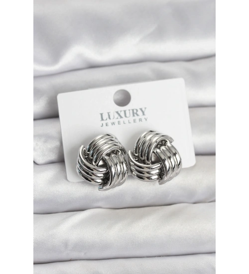 Pirinç Sarmal Gümüş Renk Kadın Küpe