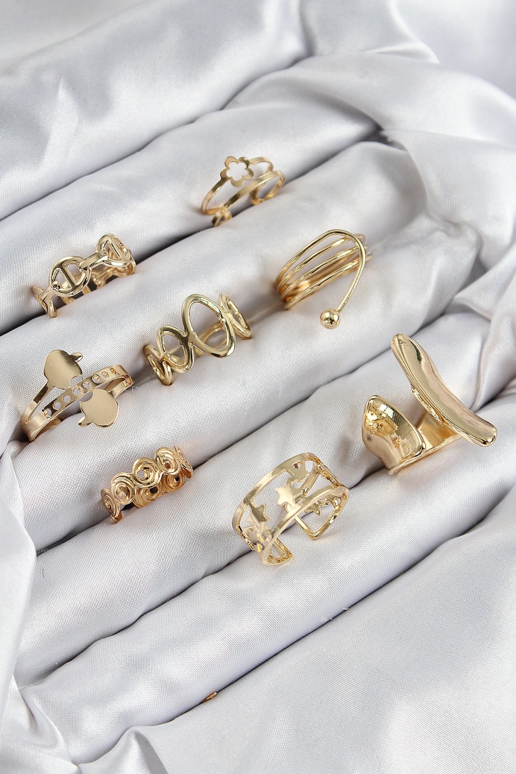 Pirinç Sarmal Ve Yıldız Model Gold Renk Kadın Yüzük Kombin Set
