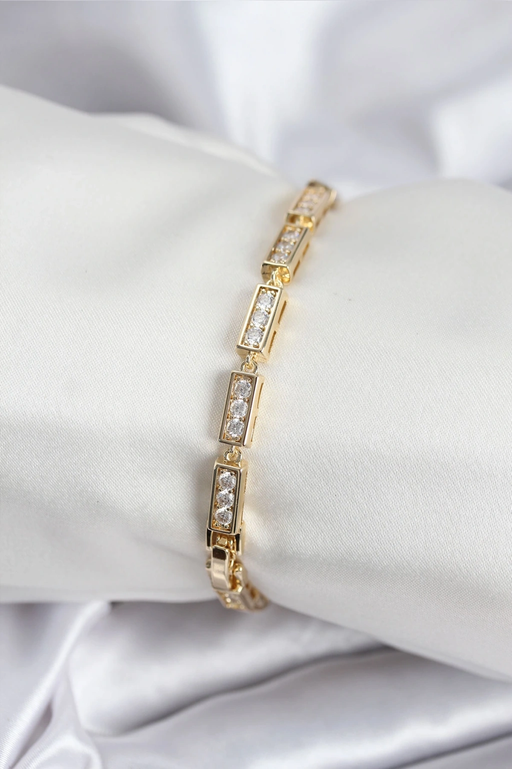 Pirinç Vıp Seri Gold Renk Parçalı Model Kadın Bileklik