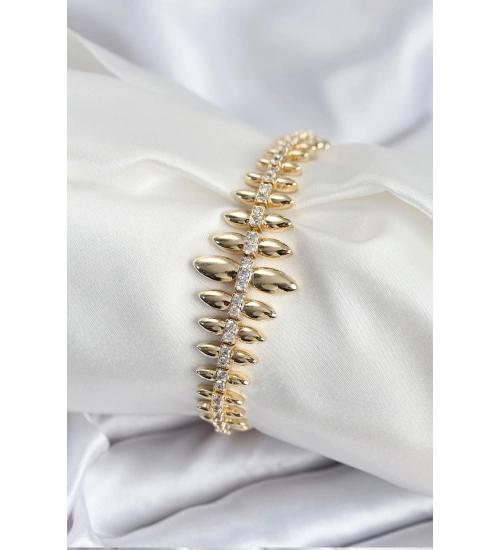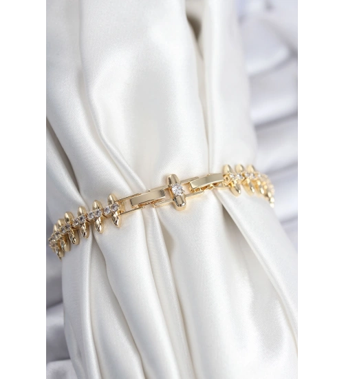 Pirinç VIP Seri Gold Renk Sıralı Damla Model Kadın Bileklik