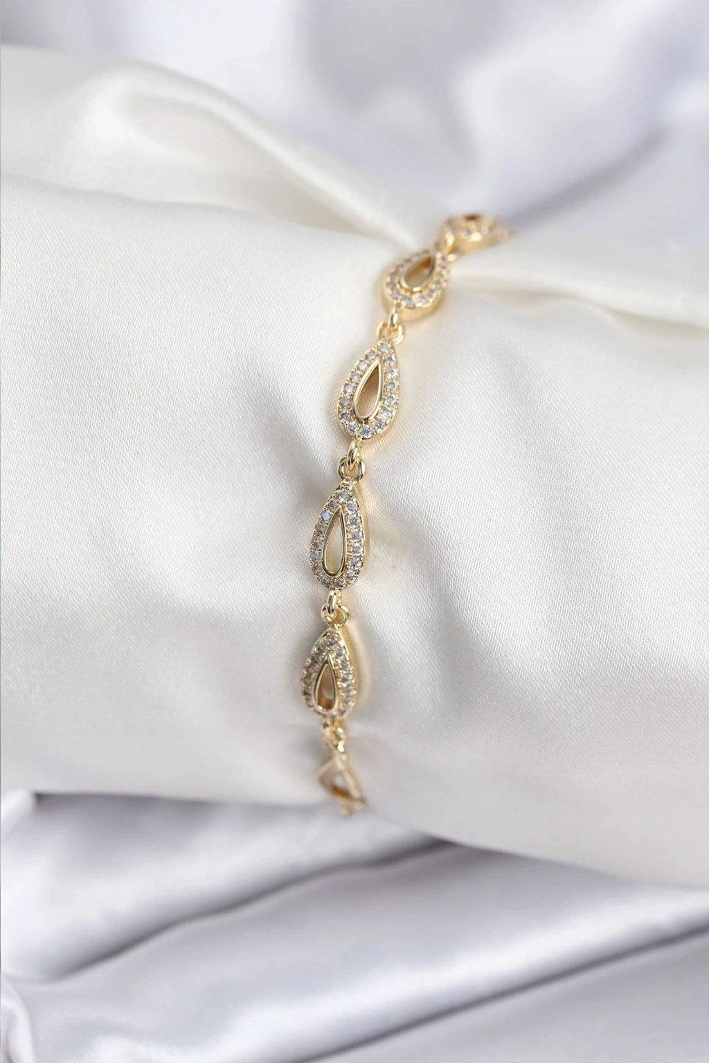 Pirinç VIP Seri Gold Renk Sıralı Damla Model Kadın Bileklik