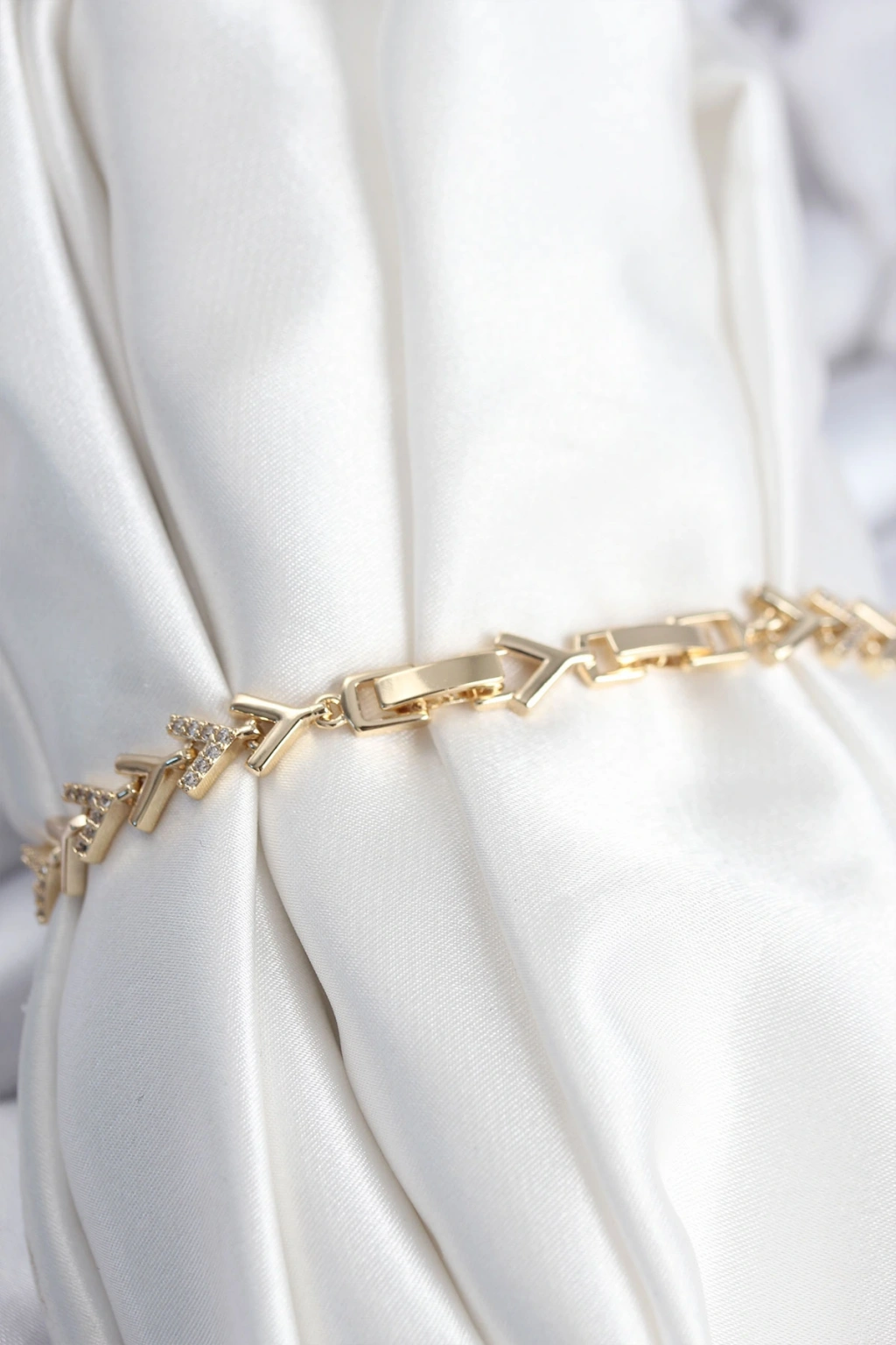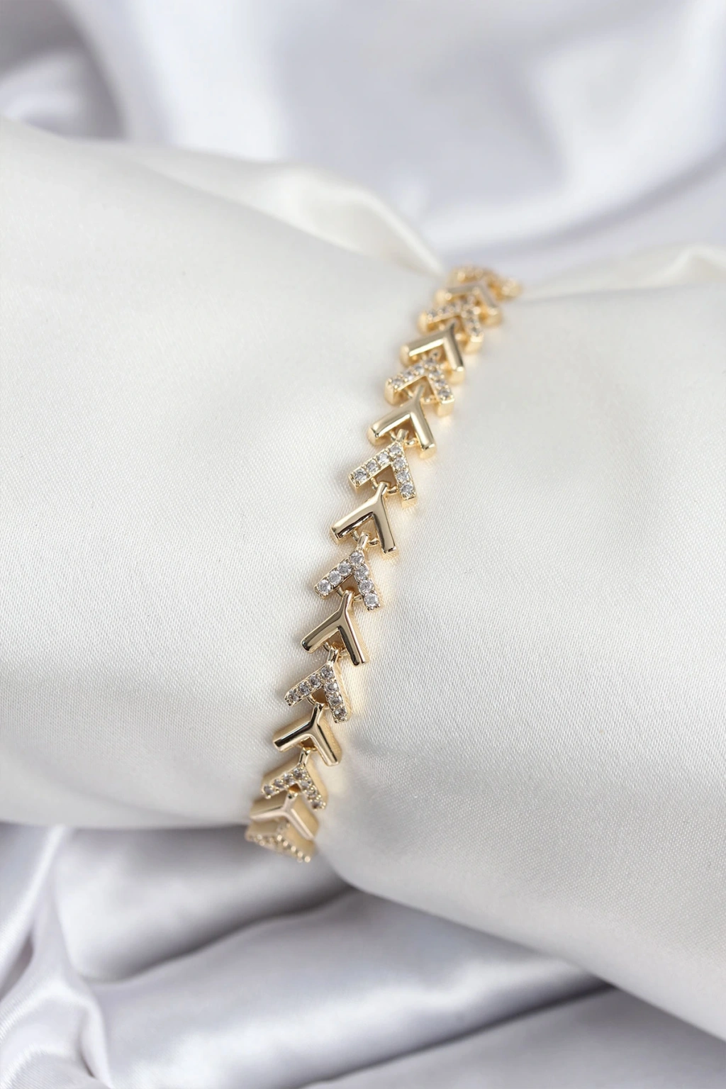 Pirinç Vıp Seri Gold Zirkon Taşlı Balık Sırtı Model Kadın Bileklik
