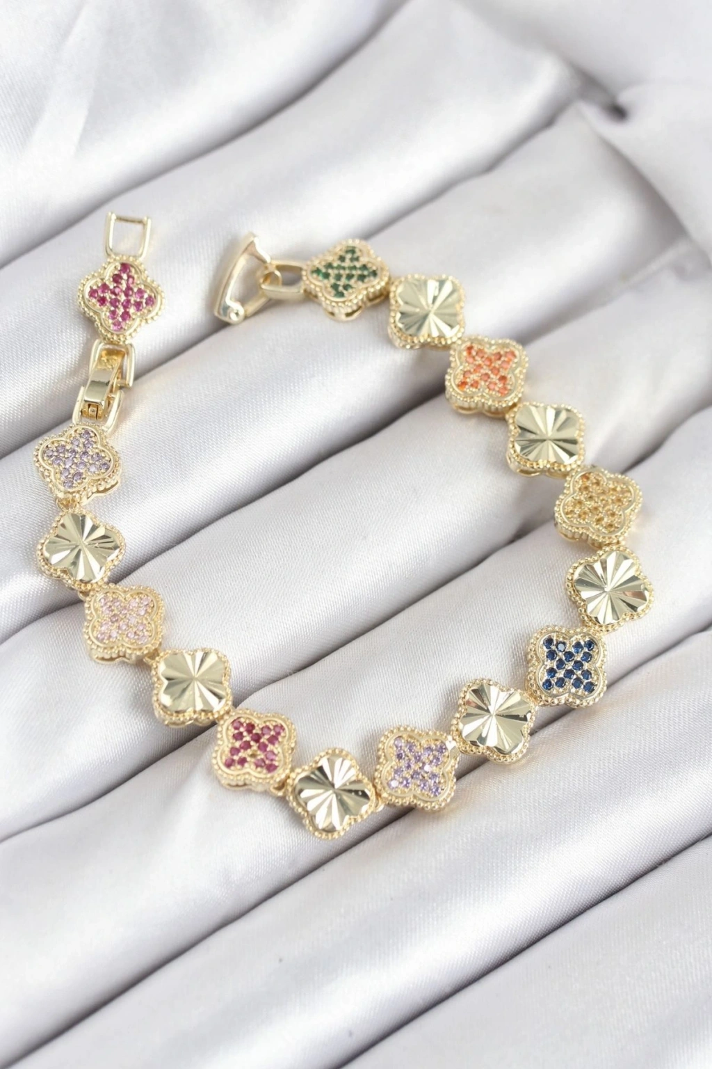 Pirinç Vıp Seri Yonca Zirkon Taşlı Kadın Bileklik